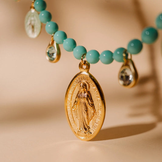 Turquoise Necklace, Catholic Charms, Handmade Jewelry